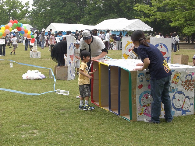 このような子どもたちに思いっきり遊ぶことの楽しさ、集団で遊ぶことの楽しさ、多くの伝統的な遊びに触れることの楽しさを体で感じてもらい、たった1日でも子どもに時間を気にせず、のびのびと遊んでもらうために子どもまつりを行っています。