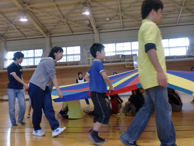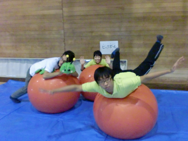 子どもには学生がつき、人形劇やリトミック、スカイバルーンなどをします。